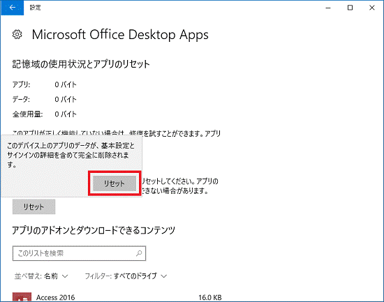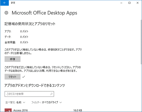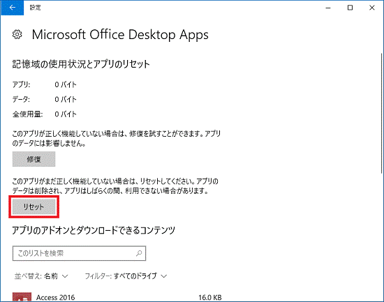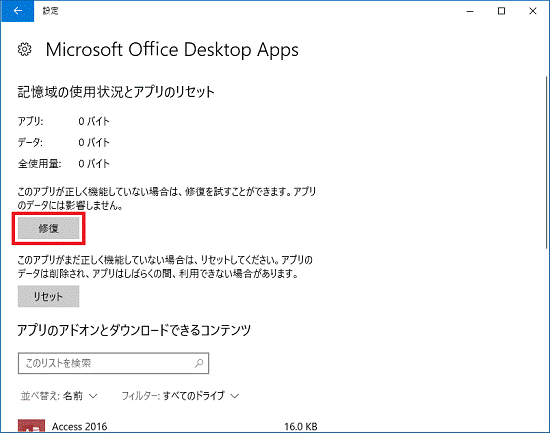 修復 / リセットの前に次の条件を満たしていることを確認してください。