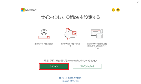 - Office 2016の初回設定時に使用したMicrosoft アカウントでサインインできること