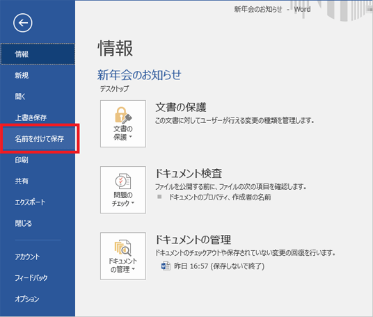 Word 2016ファイルをOneDriveに保存する方法を教えてください。