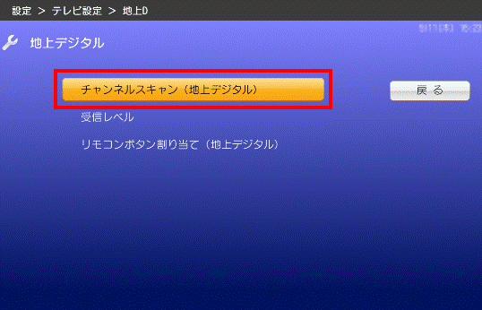 - 「チャンネルスキャン(地上デジタル)」が表示されます。