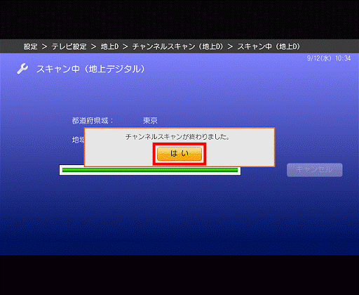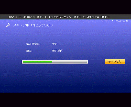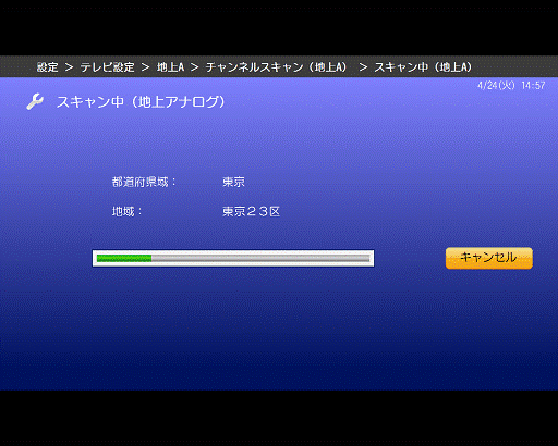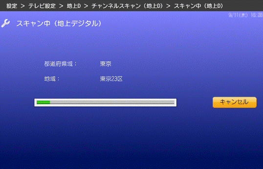 - 地上デジタル放送のチャンネルスキャンが開始されます。
