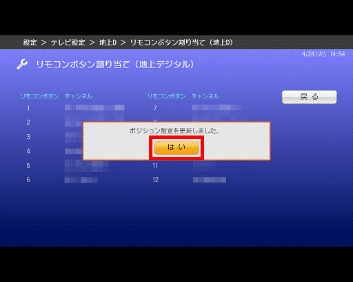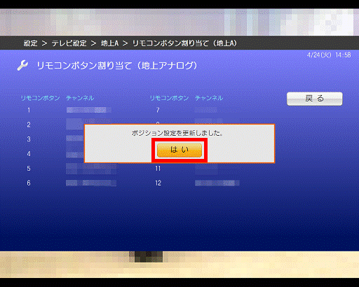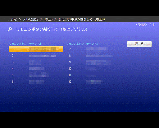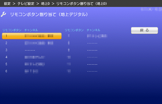 - 「リモコンボタン割り当て(地上デジタル)」が表示されます。