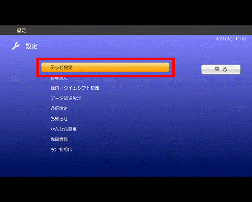 - 「テレビ設定」が表示されます。