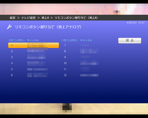 - 「リモコンボタン割り当て(地上アナログ)」が表示されます。