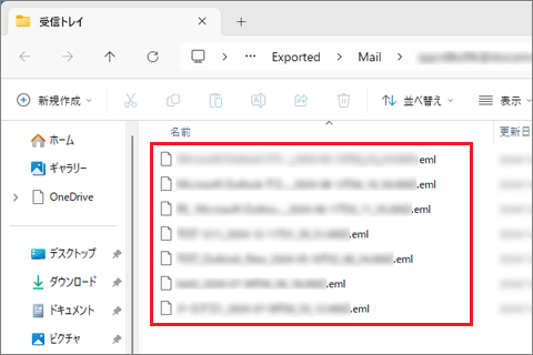 通常、受信(同期)の操作をしても、メールはメールサーバーに残っており、パソコン内に個別のファイルとしてはダウンロードされません。