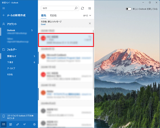 操作を行った後、もう一度メールアプリのアイコンをクリックして、起動を試してください。- Outlook(new)の画面右上に「新しい Outlook」のスイッチがある場合