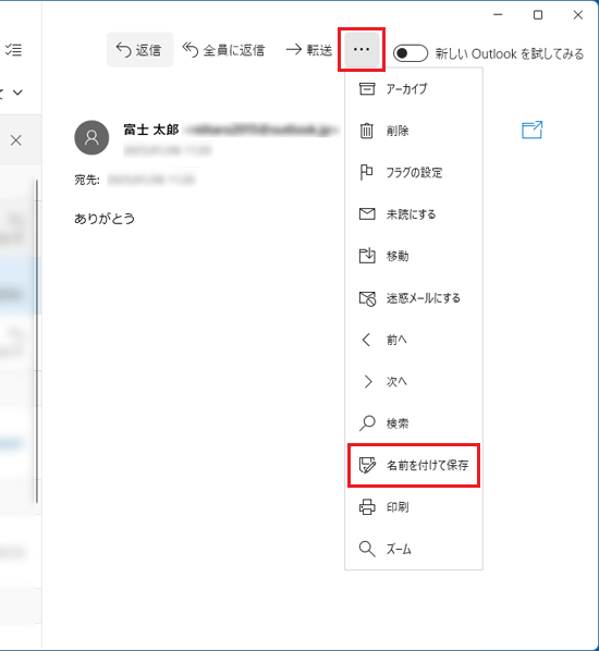 - 保存するメールの件名をクリックします。