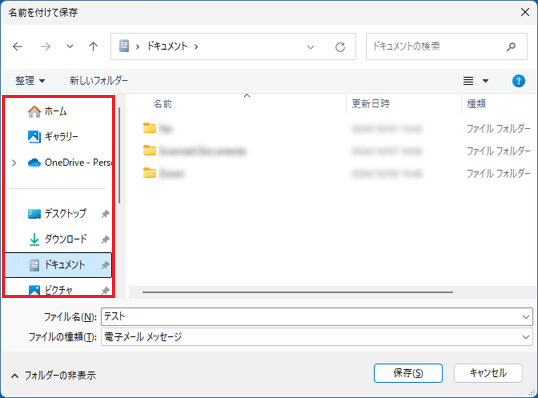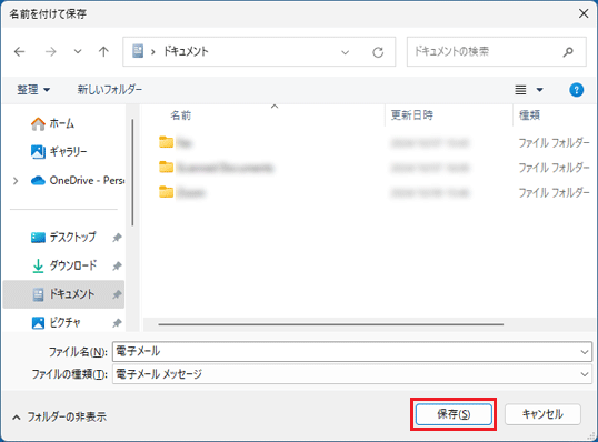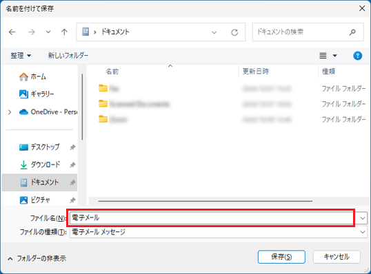 - 「ファイル名」に、保存するメールのファイル名をお好みで入力します。