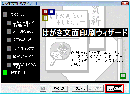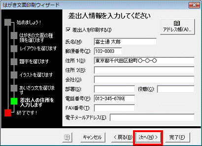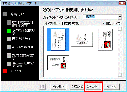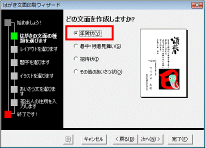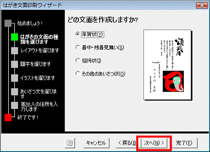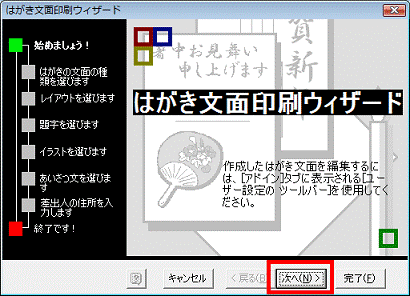 - 「はがき文面印刷ウィザード」と表示されます。