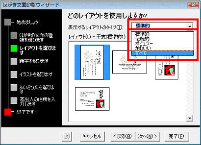 作成したいはがきの種類をクリックします。