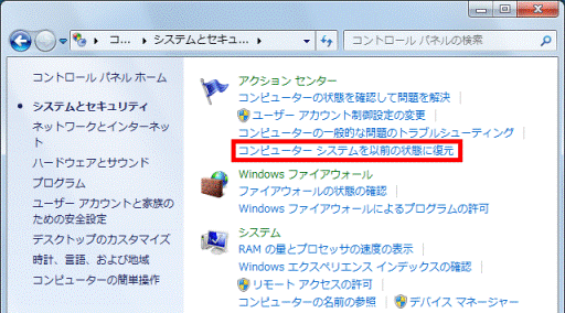 システムファイルと設定を復元します。