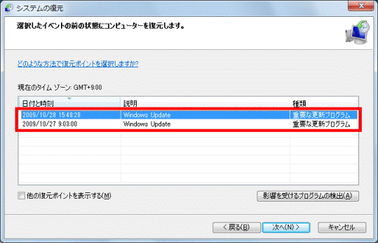 復元ポイントの確認