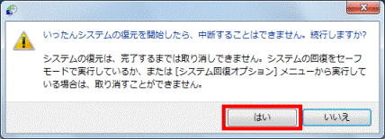 9. 「いったんシステムの復元を開始したら、中断することはできません。続行しますか?」と表示されます。