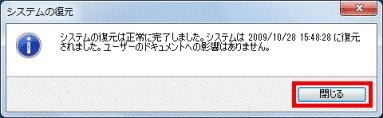 システムの復元は正常に完了しました。