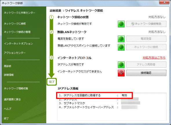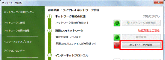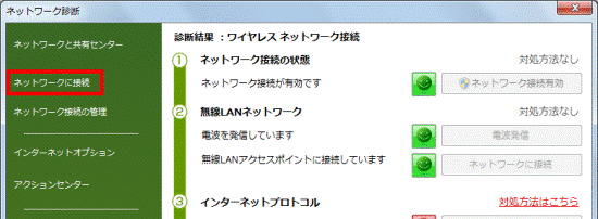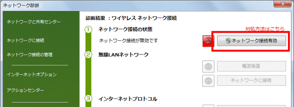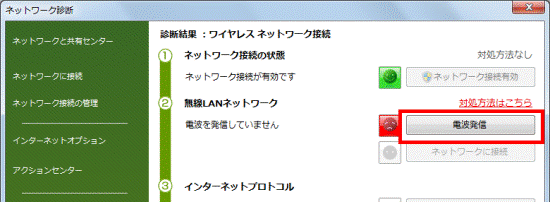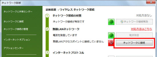 2番目の確認項目ネットワーク診断の診断結果で対処する