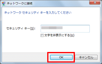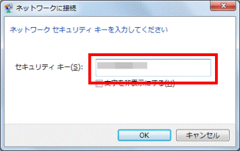 - 「ネットワークセキュリティキーを入力してください」と表示されたら、「セキュリティキー」欄に、ネットワークセキュリティキーを入力します。