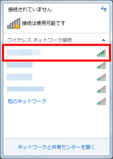 - 画面右下に表示される一覧から、接続するネットワーク名(SSID)をクリックします。