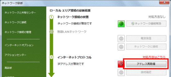 ネットワーク診断の診断結果によって、対処します。