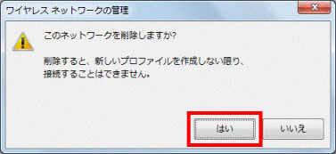 - 「このネットワークを削除しますか?」と表示されます。
