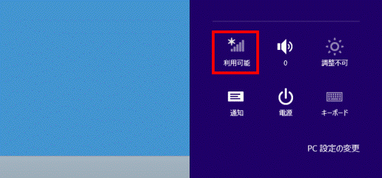 通知領域に表示される「ネットワーク」アイコンをクリックすると、手順4.の画面が表示されます。