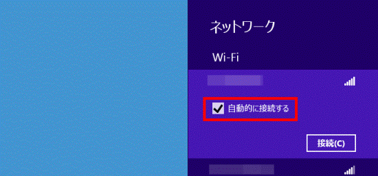 - 「自動的に接続する」をクリックし、チェックを付けます。