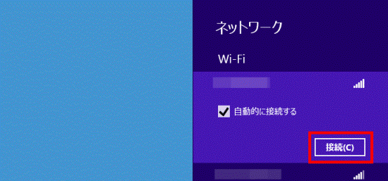 接続先のネットワーク名(SSID)をクリックします。