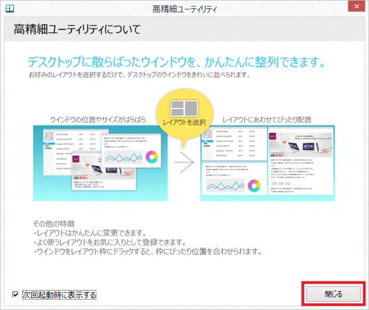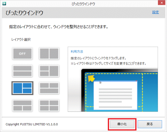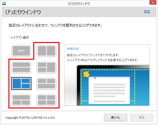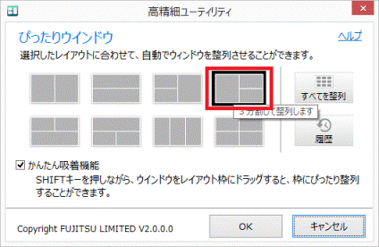 [高精細ユーティリティ] ぴったりウィンドウでデスクトップを分割してウィンドウを配置する方法を教えてください。