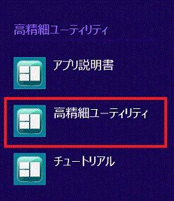V1.0 / V1.1の場合は、アプリ一覧の高精細ユーティリティの項目に「お気に入りウィンドウ」、「ぴったりウィンドウ」が表示されます。