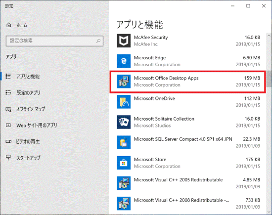 - 「アプリと機能の一覧」から、「Microsoft Office Desktop Apps」の表示が消えたら、アンインストール完了です。