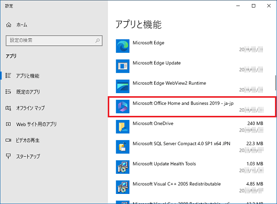 - 「Microsoft Office Home and Business 2019 - ja-jp」など、Office 2019 製品をクリックします。