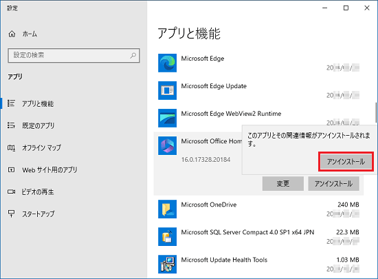 どちらのアプリも「アプリと機能」から、アンインストールを行います。