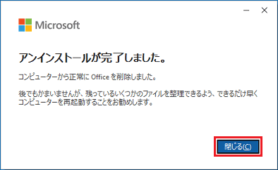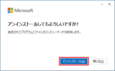 「はい」ボタンをクリックします。 - 「アンインストールしてもよろしいですか?」と表示されます。