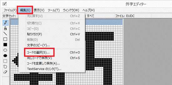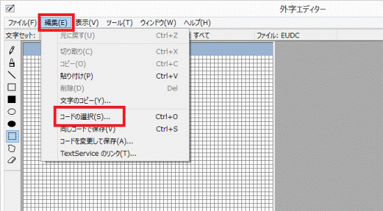 - 「編集」メニュー→「コードの選択」の順にクリックします。