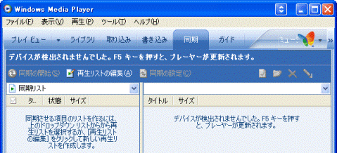 右側の欄に、「デバイスが検出されませんでした。」と表示されている場合は、ポータブルデバイスが正しく認識されていません。