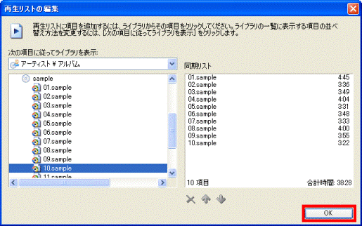 - 「同期リスト」に音楽ファイルを追加したら、「OK」ボタンをクリックします。