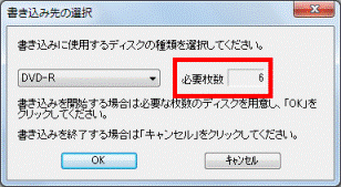 「必要枚数」欄に表示されている枚数のディスクを用意します。