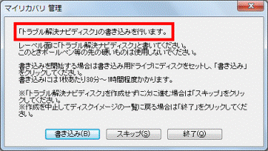「スキップ」ボタン(または「いいえ」ボタン)をクリックすると、そのディスクを作成せずに、次のディスクの作成に進みます。