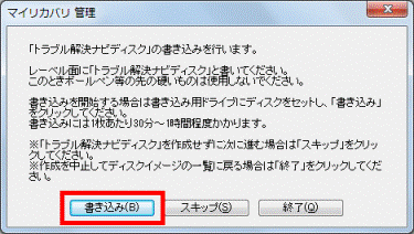 リカバリディスクセットを作成するときは、「スキップ」ボタン(または「いいえ」ボタン)はクリックしないでください。