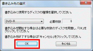- ディスクを用意したら、「OK」ボタンをクリックします。