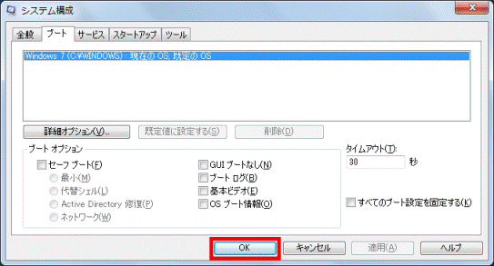 - 「OK」ボタンをクリックし、「パフォーマンスオプション」を閉じます。
