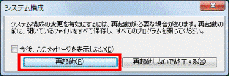 - 「システム構成の変更を有効にするには、再起動が必要な場合があります。」と表示されます。