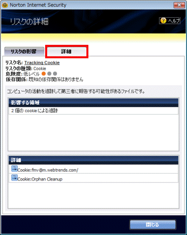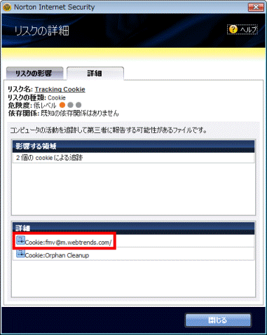 FMVパソコンの初期セットアップ直後に「完全スキャン」を実行したところ、「Tracking Cookie を検出しました」と表示されます。