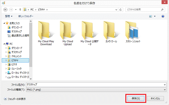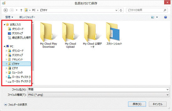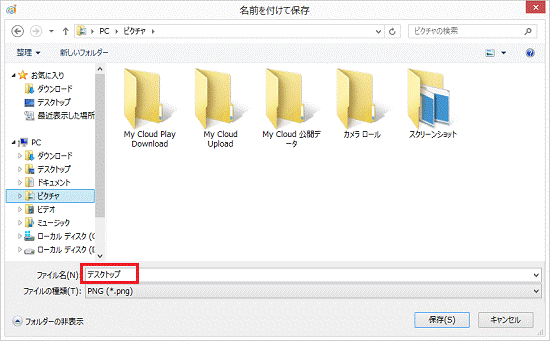スクリーンショットでコピーした画面は、次のフォルダーに保存されています。