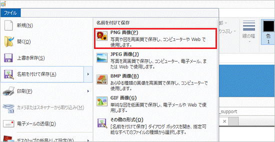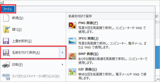 11. 「名前を付けて保存」の一覧から、お好みのファイル形式をクリックします。