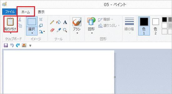 「ホーム」タブ→「貼り付け」ボタンの順にクリックします。