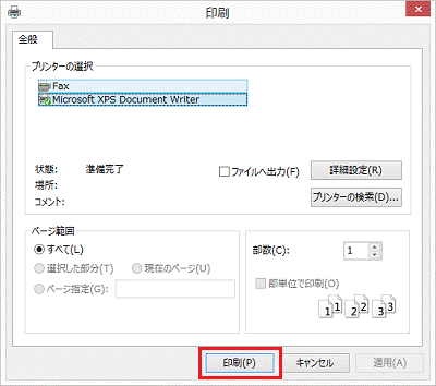 印刷するプリンターが選択されていることを確認し、「印刷」ボタンをクリックします。