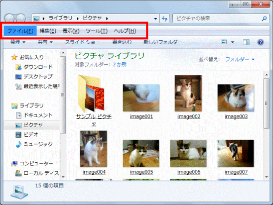 - メニューバーが表示されていない場合は、キーボードの【Alt】キーを押します。