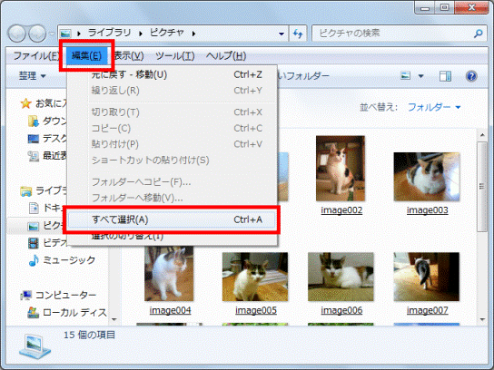 - 「編集」メニュー→「すべて選択」の順にクリックします。
