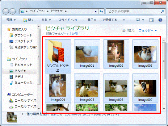 フォルダー内にあるファイルをすべて選択する方法は、次のとおりです。