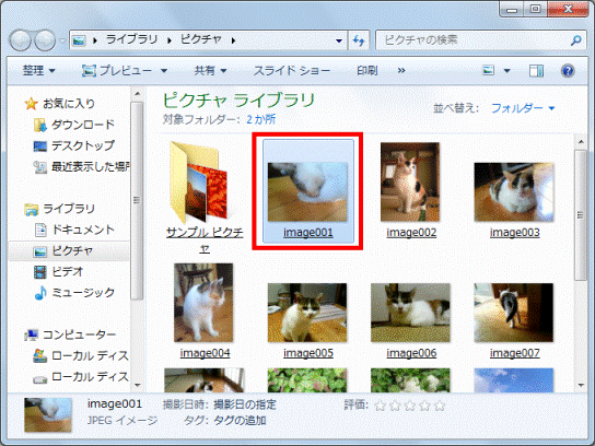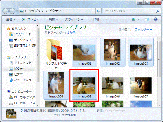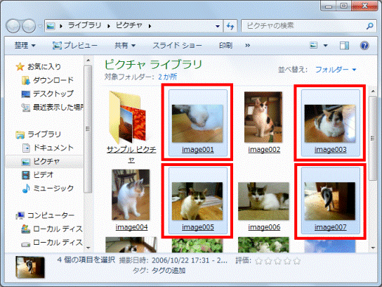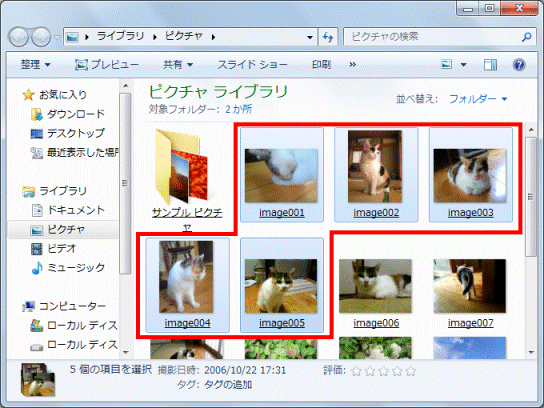 連続して並んでいるファイルを選択する方法は、次のとおりです。